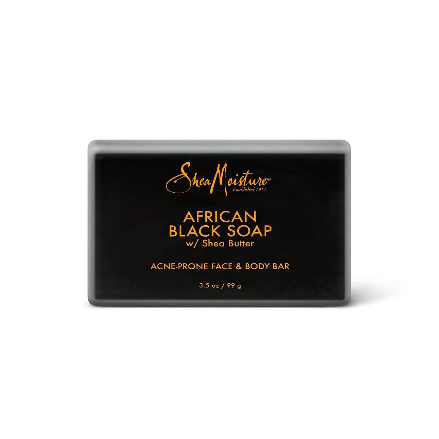 SheaMoisture Face and Body Bar for Oily, Blemish-Prone Skin African Black Soap Paraben Free 3.5 oz 4 Count, facial cleanser(3.5 Ounce (Pack of 1))